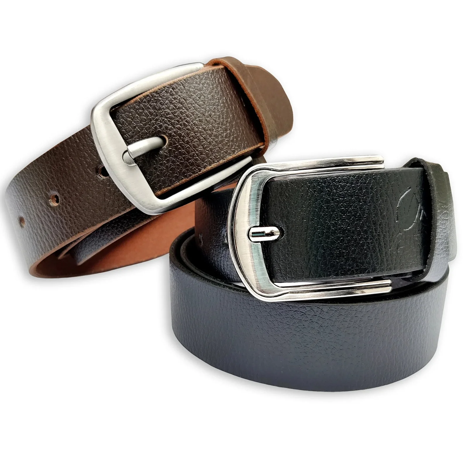 Fine men’s leather belts usually use full-grain or top-grain hide along with solid brass or steel buckles.